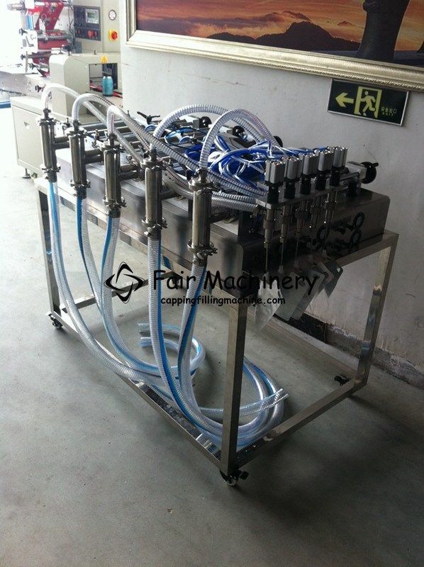 सेमी ऑटोमैटिक टोमैटो सॉस/चिली सॉस फिलिंग मशीन 5 नोज़ल अप और डाउन फिलिंग नोज़ल के साथ
